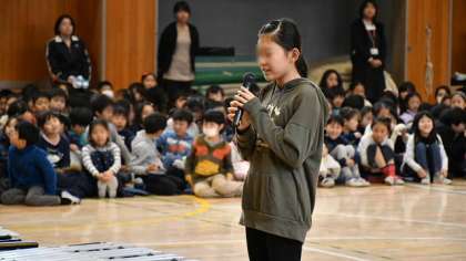 「6年生を送る会」写真アルバム22「終わりの言葉 退場」