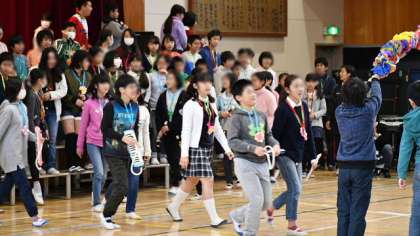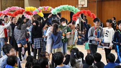 5年生の代表から終わりの言葉があり、6年生がアーチをくぐって退場し終了しました。4・5年生の代表委員会が頑張って運営した甲斐あって、素晴らしい会になりました。