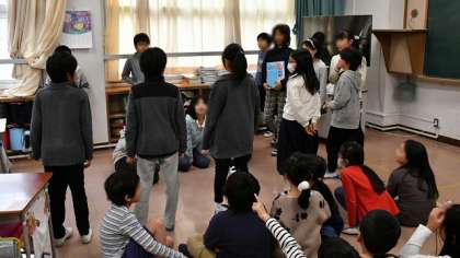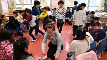 3月2日、「6年生を送る会」「給食」の後、なかよし班ごとに集まって、今年度最後の集会をして楽しみました。