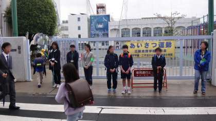 先週18日(火)から20日(木)までは、瀬田中学校、瀬田小学校とともに、「多摩川の学び舎」三校合同で、あいさつ運動をしました。登校時間帯に、中学生がやってきて、子どもたちに「おはようございます」のあいさつの声かけをしてくれました。