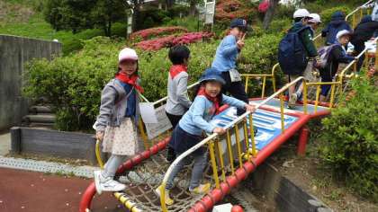 2年生はグループごとに、園内を回り、遊具で遊びました。