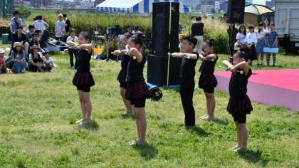 午前中公園で披露した「二子トワラーズ」も舞台で本番。強い風にも負けず、昨年度大会金賞の実力を発揮しました。