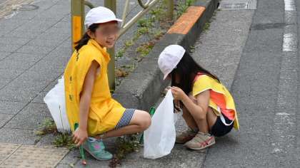 12日、4年生が「クリーンタウン作戦」に参加しました。街をきれいにしようという地域の取り組みです。毎月3年生以上が交代で参加しています。