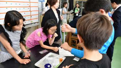12日、他のクラスが給食後に下校し、6年3組が5校時に研究授業を行いました。