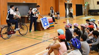 13日、土曜授業日、学校公開のこの日、3年生は、玉川警察署、PTA校外委員会のご協力をいただき、自転車教室を行いました。昨年度から、授業時間内に行うようになり、3年生全員が受講しています。