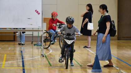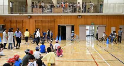 Pサポさん(募集に応じたPTAのサポート役の皆さん)にも手伝っていただき、充実した自転車教室ができました。