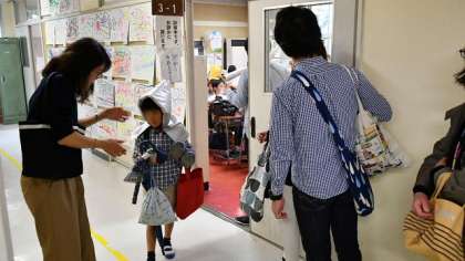 13日(土)、この日は緊急時の児童引き取り訓練も行いました。大地震が発生するという想定で、引き取り人として登録している保護者の方々などに、子どもたちを迎えに来ていただきました。万が一の時は、引き取りに長時間かかることが予想されますが、学校でお子さんをしっかりお預かりしますので、ご安心ください。