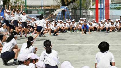当日の午後の1番にする応援の練習もしました。ウェーブが楽しそうです。