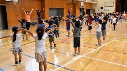 26日(金)、明日は運動会で、今日は各学年リハーサルを行う予定でしたが、あいにくの雨のため体育館で練習をしました。