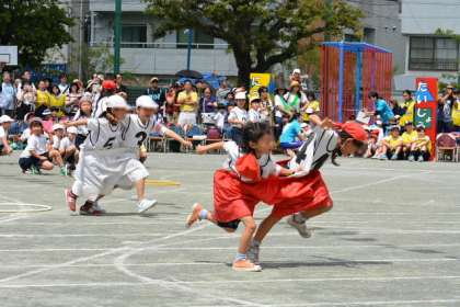 「ゴーゴーデカパン」では、デカパンを二人ではいて、息を合わせ、協力し合って走りました。デカパンの姿がかわいいですね。
