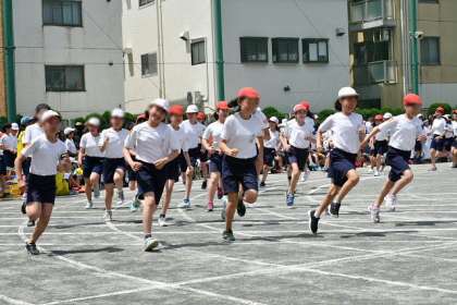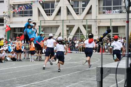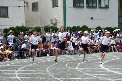 6年100m走、「夢にときめけ 短距離走」です。夢に向かって小学校生活最後の個人走です。