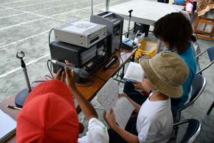 来扁鵲、敬老積はお客様でいっぱい。放送担当は一生懸命実況放送をしました。