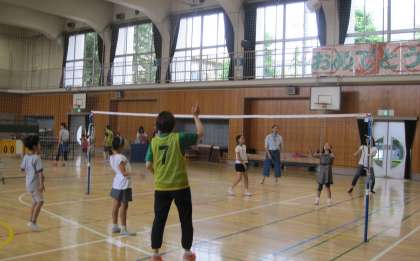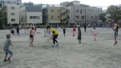 ショートテニスでは、エレッセテニスクラブの方にラケットの握り方や基本的な練習方法などを教わりました。初めて挑戦した子もゲームができるまでに上達しました。ソフトバレーボールは、誰もが楽しめるように、ルールを工夫して行いました。PTAバレー部のみなさんや学校支援コーディネーターの方にお世話になりました。子どもたち、保護者、地域、学校が一体となって実施した二子ニコひろばは、大盛況で終えることができました。企画運営に携わったみなさん、本当にありがとうございました。