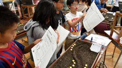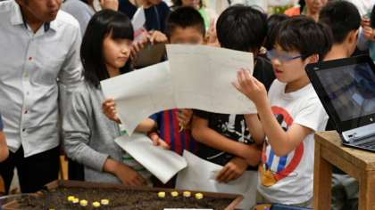 6月1日(木)5校時、5年1組で理科の研究授業を行いました。「流れる水のはたらき」という学習です。川の水の「侵食」「運搬」「堆積」に関する学習内容です。この学習の初めには、実際に多摩川のようすを見に行ったり、増水した川のようすを映像や画像で見たりして、身近な存在としての川の流れ、そして防災についても考えながら学習をすすめてきました。この日はそのような学習の発展的な扱いで、二子玉川地区を、万が一の多摩川の洪水から守るためにというテーマで、モデル実験を取り入れて学習しました。実験前に考えた意見を交流している様子です。