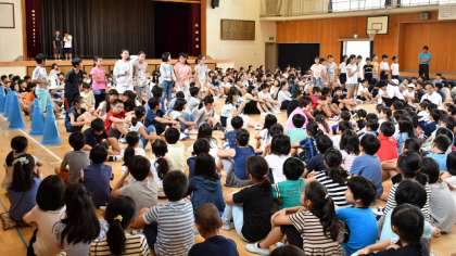 1日(木)朝、体育館に全校児童が集まり、委員会発表集会を行いました。体育館の前方に5・6年が委員会ごとに整列し、委員会メンバーの紹介と、委員長から活動内容を発表しました。