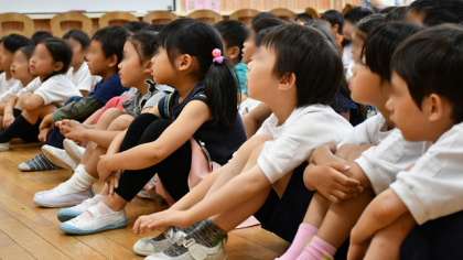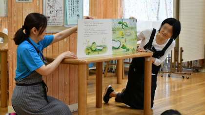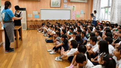 6日(火)の給食にはソラマメが出ましたが、これは1年生が皮をむきました。体験活動の一環として、給食に使う食材を直に見て、その調理過程に参加し、食のありがたみを感じる活動です。ランチルームに集まった1年生。栄養士図書館司書がソラマメの絵本を読み聞かせして、食材への関心を高めました。子供たち夢中で聞いていました。