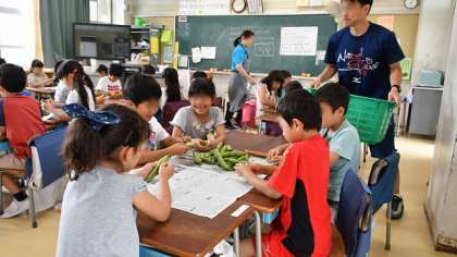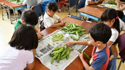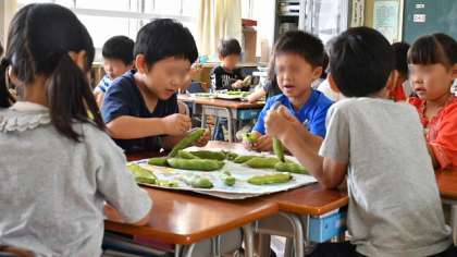 さあ、教室に戻ってソラマメの皮むきを始めましょう。最初はなかなかできませんでしたが、試行錯誤しているうちにだんだん上手にできるようになりました。
