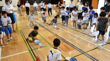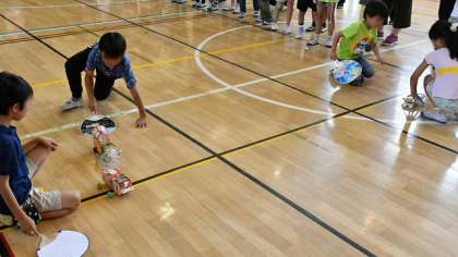 レースは、各グループ対抗のリレーを行います。この日は、各グループの目標を紹介しあった後、お試しのレースをしました。