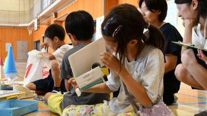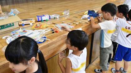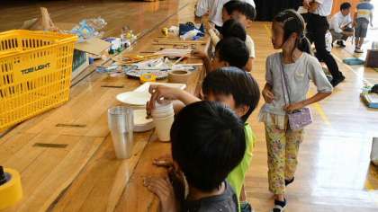 お互いに見合ったことを参考にして、自分の自動車の改造に取りかかりました。材料置き場に行って、使えそうな材料を探します。