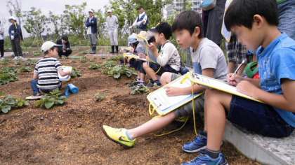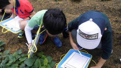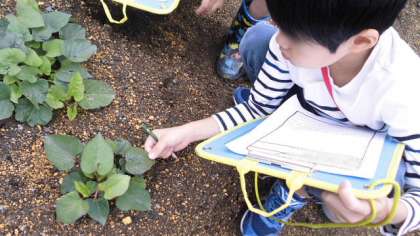植え付けを行ってからこれまでの間、お世話になっている銀雄クラブのみなさんが、水やりや土寄せをしてくださっていたので、苗はずいぶん育っていました。みんな一生懸命観察していました。