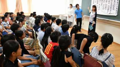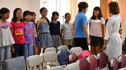 わかりやすく、しっかり相手に伝わる話し方を、劇団四季のメソッドでしっかり教えていただきました。最後には、劇団の方と一緒に「すてきな友だち」を歌いました。