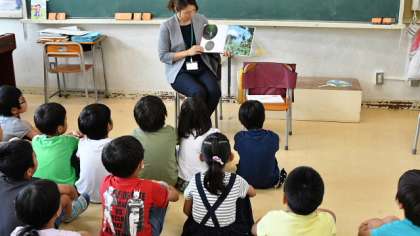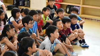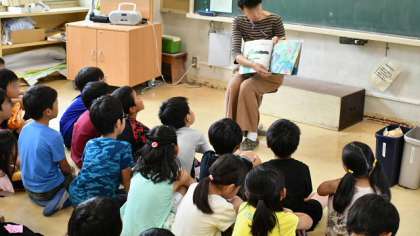 読み聞かせに夢中な子どもたちの姿、すてきですね。読み聞かせをボランティアでやっていただいている皆様に感謝です。