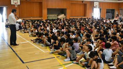 6月23日、学校公開2日目、玉川警察署のスクールサポーター、少年係の方を講師にお招きして、セーフティ教室を行いました。例年は連れ去り防止など、子どもたちが自分の身を守る方に重点を置いて指導していただいておりましたが、今年度は「万引き予防」をテーマにお話いただきました。