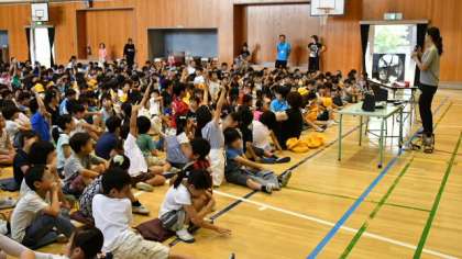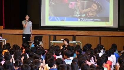 1時間目は、全校児童に向けて子どもの頃のお話や、オリンピックを目指した選手時代の苦労や楽しかったこと、参加したリオデジャネイロオリンピックのことなどを、とてもわかりやすくお話していただきました。講演の後、学年ごとに一緒に記念撮影をさせていただきました。