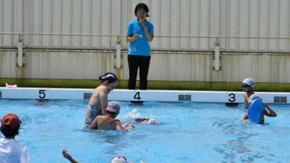ご指導いただいた後は、3・4年担任が金藤選手と一緒に泳がせていただきました。
