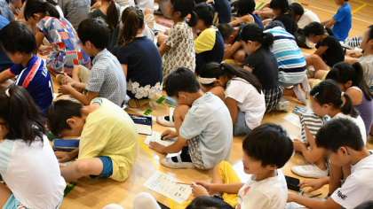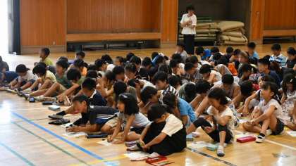 20日は終業式ですが、朝の式を終わった後も4校時まであります。最終日とあって、学習は終わっているので、各クラス様々な活動をしていました。3年生は2学期の理科の研究授業にむけて、アンケートをとりました。アンケートと言っても、教員が鉄琴をたたいて、子どもたちがその音を聞いてアンケートに記入するというアンケートです。さて、このアンケートが、授業にどう生かされるのか楽しみです。