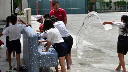 最終日とあってお楽しみ会をしているクラスもたくさんありました。水遊び(水のかけあい?)を思いっきり楽しんでいたり、オーソドックスなゲームをしたりと様々です。