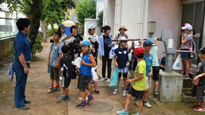 煙ハウスによる煙中脱出訓練、マンホールトイレ見学と井戸水ポンプの操作体験、防災倉庫の見学というように、様々な訓練を経験して防砂に関する知識や技能を身につけました。
