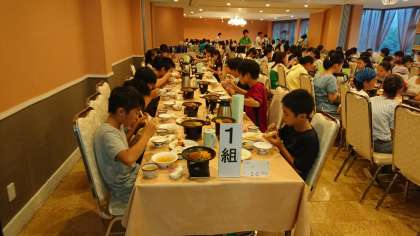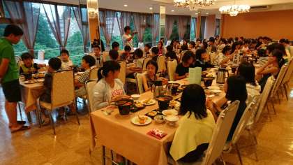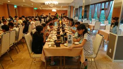 ホテルの部屋でしばらく思い思いに過ごした後は、夕食です。いただきます。