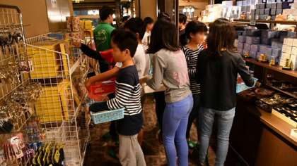 今日は、ホテルの売店でお土産用の買い物をしました。担任があらかじめ預かっていたお小遣いを子どもたちに渡し、それぞれが買い物を楽しみました。