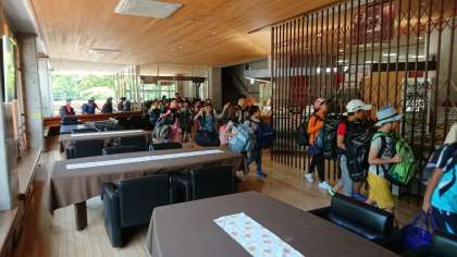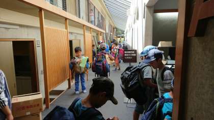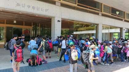 昼食後、荷物を持って宿泊棟の部屋に入りました。さあ2泊3日の楽しい合宿生活の始まりです。