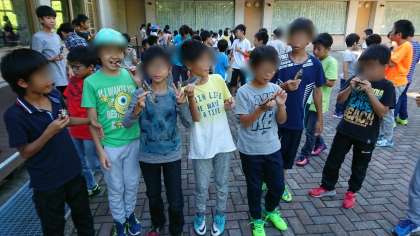 さあマスが焼き上がりました。みんなワイルドにかぶりつきます。おいしそうに食べています。