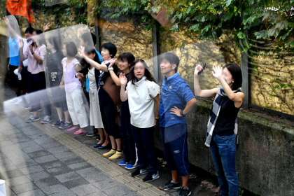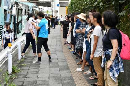 13日(水)から、5年生が群馬県川場村に2泊3日で移動教室に出かけています。その1日目のようすを写真で紹介します。朝早く7時15分に学校に集合して、1クラス11台の貸し切りバスに乗り込み出発しました。朝早かったのにもかかわらず、保護者家族の皆さんも、本校職員もたくさん見送りに来てくれました。行ってきまーす。