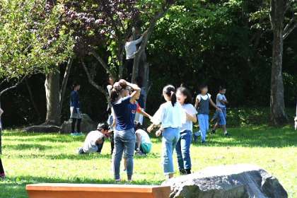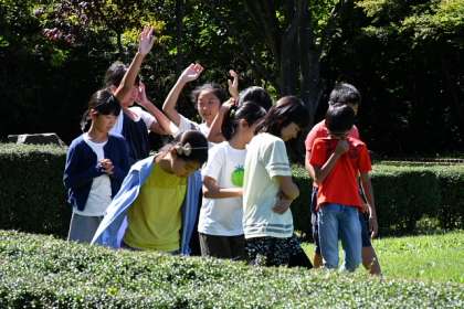 サービスエリアの奥の方に、風景もよく公園のようなスペースがあり、のびのびと遊ぶことができました。