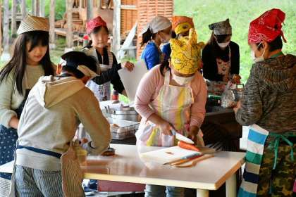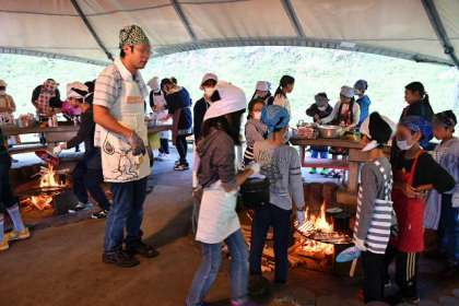 飯ごう炊さんのようすです。みんな一生懸命分担された仕事をやっていたのに感心しました。すばらしい。