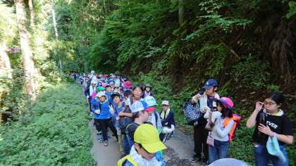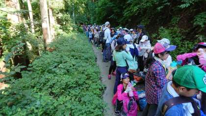 道路から林道に入る広場で小休止です。この後は上り坂の狭い林道です。