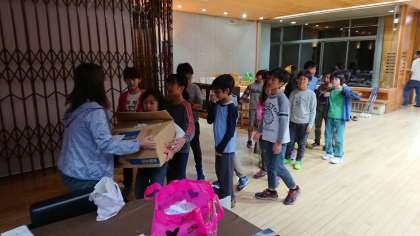 今晩のお楽しみはキャンプファイヤーです。係の子どもたちが先に準備をします。キャンプファイヤーのようすは、仕事が大忙しになるため、速報版ではなく、「ハイライト」の方で掲載します。お楽しみに。