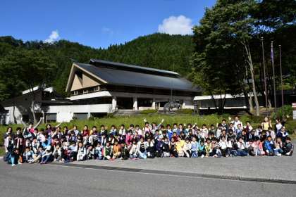 2日目も天気に恵まれ、登山を予定通り行いました。学年写真は銅像の前で撮りました