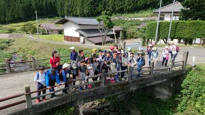村めぐりのようすです。薄曇りでちょうどよい天気です。