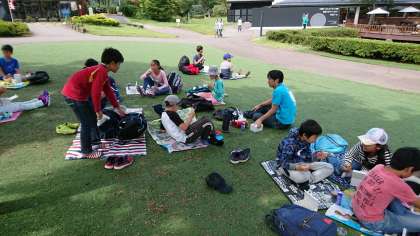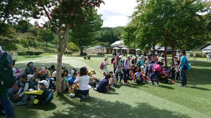 リンゴ狩りが終わって、再び村巡り。目的地の田園プラザについて、昼食です。
