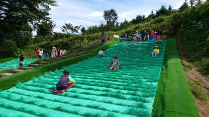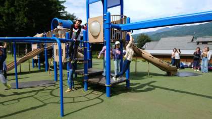 昼食後、田園プラザの遊具で楽しく遊びました。