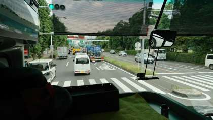 バスは15時34分東名用賀インターチェンジを通過しました。瀬田交差点まで混んでいますがもう少しで着きます。