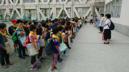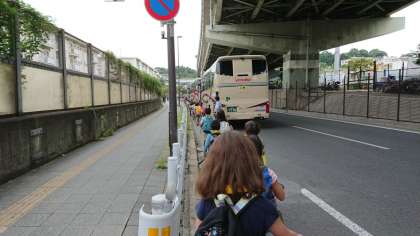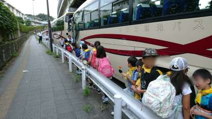 20日水曜日、朝から3年生が社会科見学に出かけます。区内巡りです。クラスごとに1台の貸切バスに乗っていきます。朝8時30分に出発です。ようすを速報で現地から掲載します。