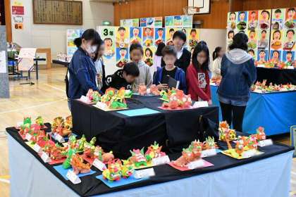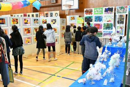 高学年児童は、鑑賞の観点が違うようで、一つ一つ丹念に見て、友だちと感想を話し合っていました。