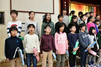 音域が子どもたにとってはだいぶ高く難しい曲ですが、子どもたちは大好きです。気持ちよく歌っていました。