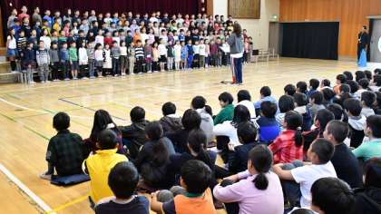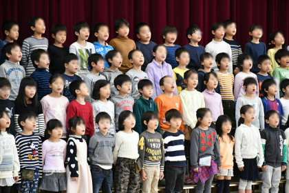 7日(木)の6校時、9日に開催する「合唱発表会」、2・4・6年生のリハーサルを行いました。写真は2年生のようすです。一生懸命声をはり上げて歌っていました。